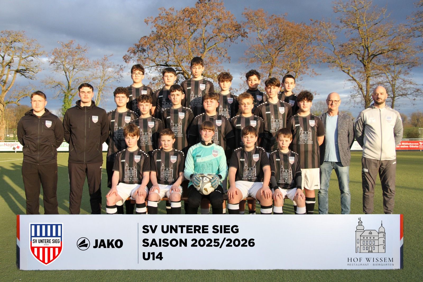 Große Freude bei unserer C-Jugend: Hof Wissem hat die Mannschaft mit einem kompletten neuen Spieloutfit in Weiß und Schwarz ausgestattet. Die einheitlichen Trikots stärken den Teamgeist und sorgen für einen geschlossenen, professionellen Auftritt auf dem Platz.